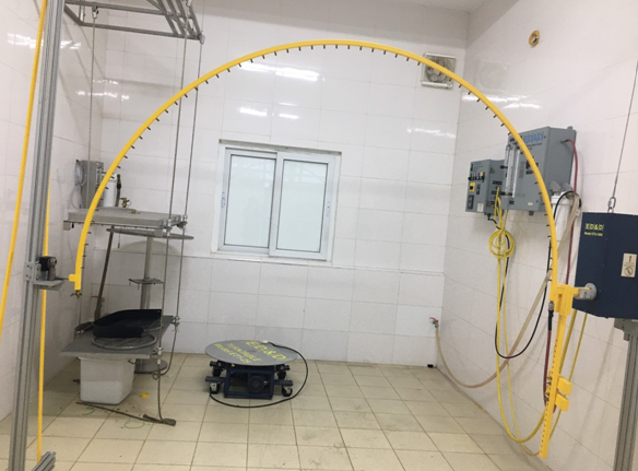 Hệ thống thử nghiệm IPX5-6 (Hình 5): Đầu phun đường kính 6.3 mm được điều chỉnh khoảng cách từ 2,5 m đến 3 m đến đối tượng thử. Có thể điều chỉnh được góc nghiêng của đầu phun theo yêu cầu khách hàng.