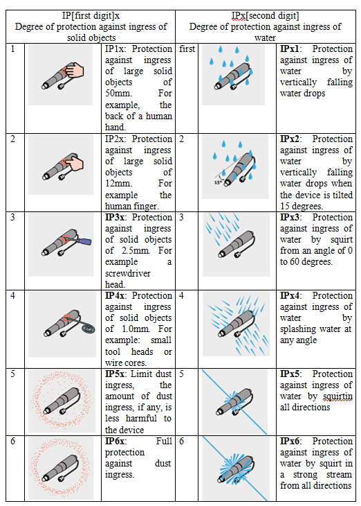 Chữ số thứ hai: Là chỉ số bảo vệ IP thể hiện mức độ chống lại sự xâm nhập của nước từ bên ngoài.